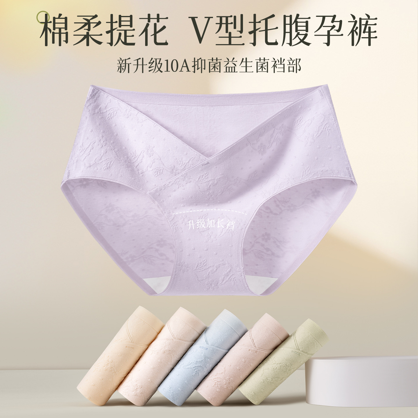 孕妇纯棉抗菌裆怀孕早中晚期产后专用纯棉提花加长裆内裤