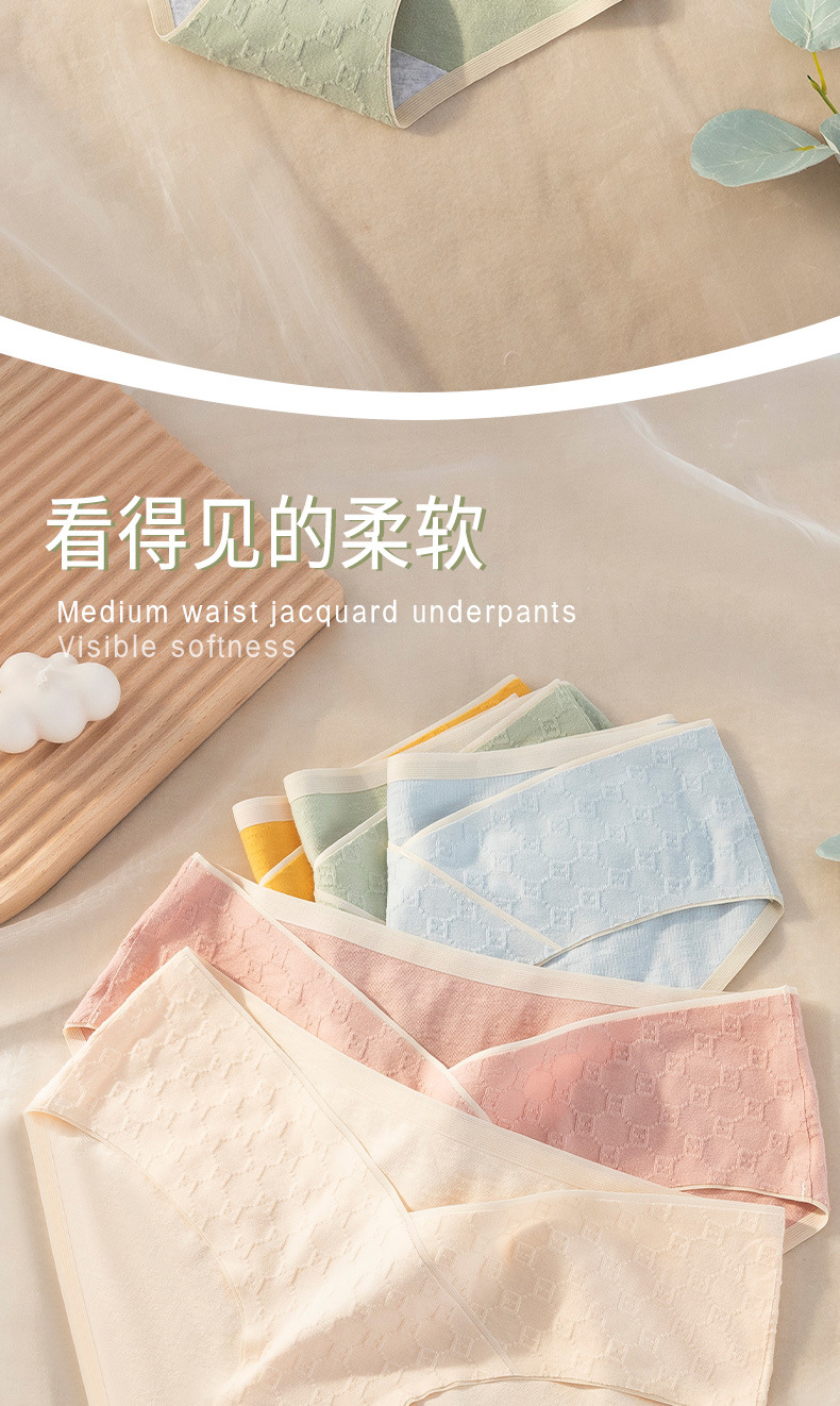 2026年新作7A抗菌長尺純綿股間通気性ジャカードシームレスミッドウエスト女性用下着