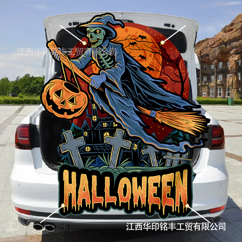 国境を越えたアマゾンのハロウィーンのトランクに旗を掲げて旗を掲げて旗を飾って頭蓋のポリエステル旗を配置する