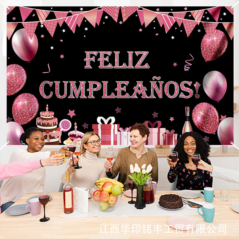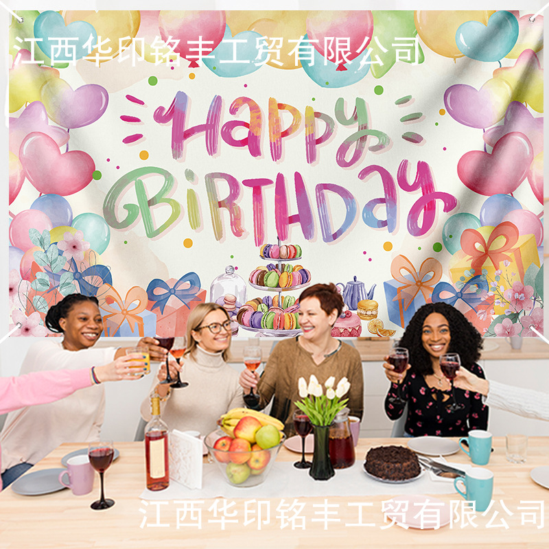 クロスボーダー新しい特大誕生日パーティー背景布写真撮影小道具と装飾品はデザインパターンをデュアルプリントして卸売することができます