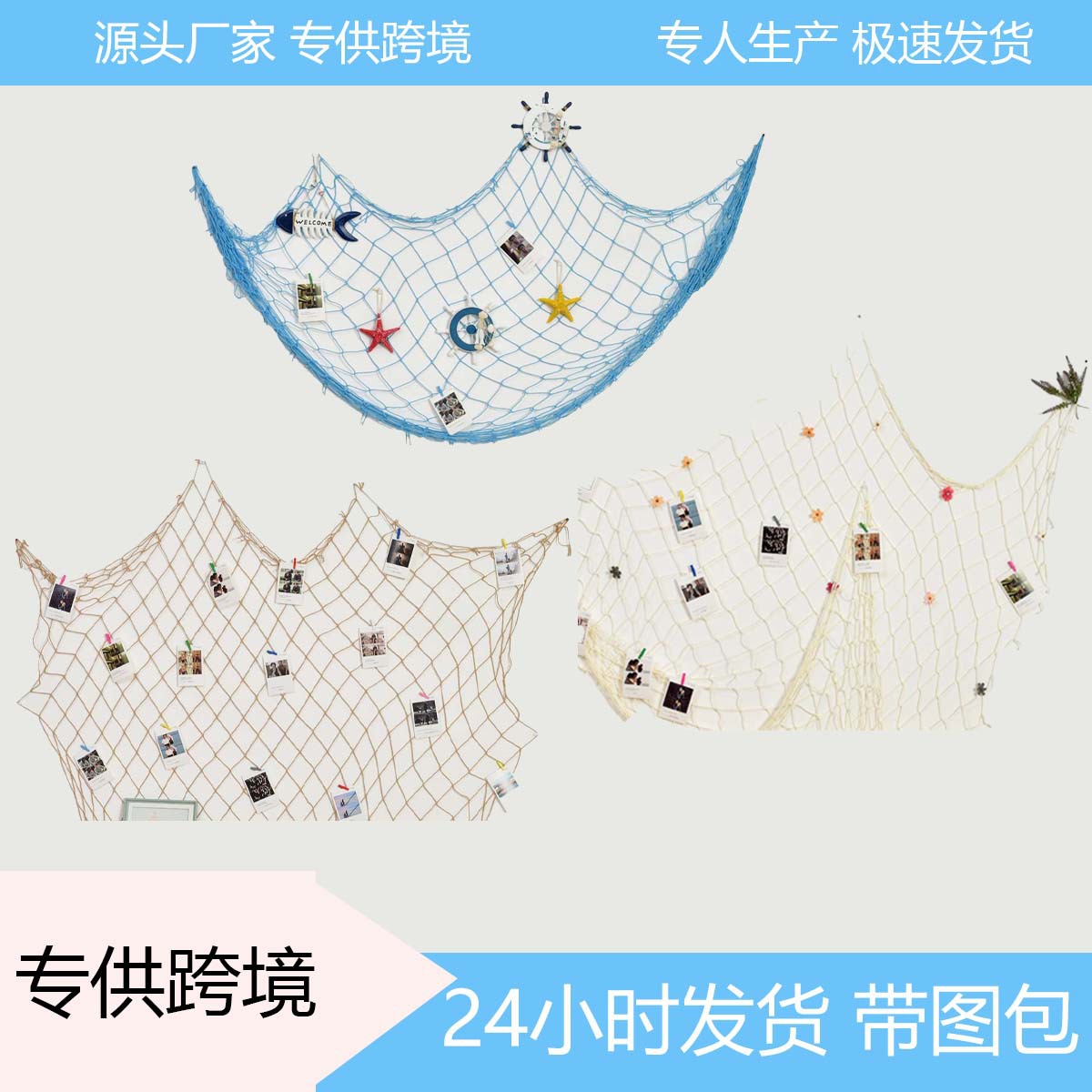 地中海スタイルの幼稚園綿麻ロープ漁網壁装飾インスタイル装飾メッシュ写真壁背景壁