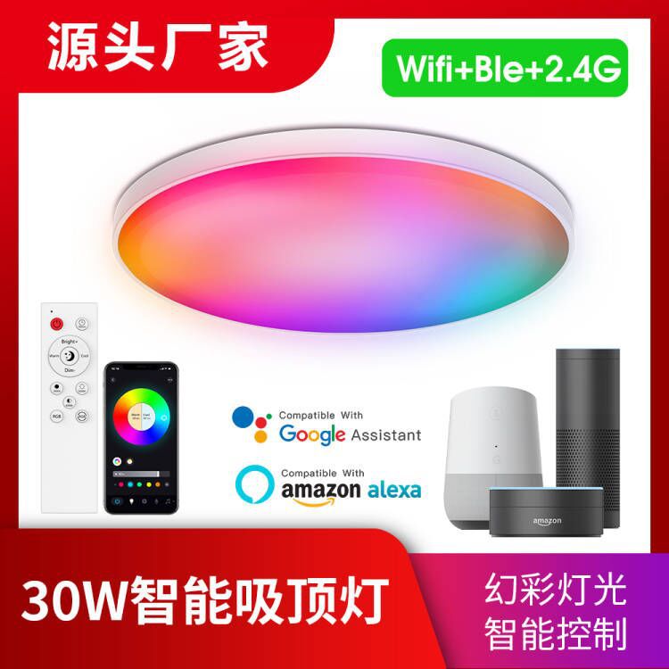 4.宽压-30W WIFI蓝牙双模 幻彩吸顶灯(含2.4G遥控,螺丝包,说明书)