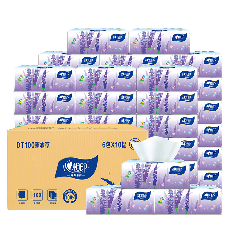 DT100心相印商用 (ラベンダー) 100は、3層のプラスチック製のティッシュを吸ってナプキンを吸っている