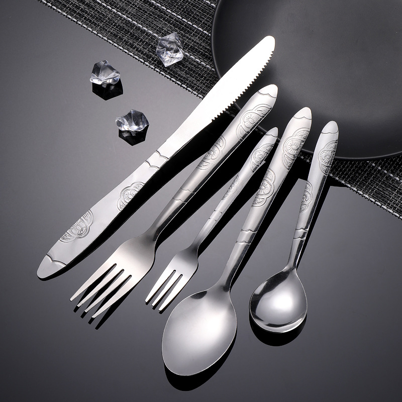メーカー直供ホテル食器セット洋食ステーキナイフフォークスプーン先丸頭スプーン模様ステンレススプーン