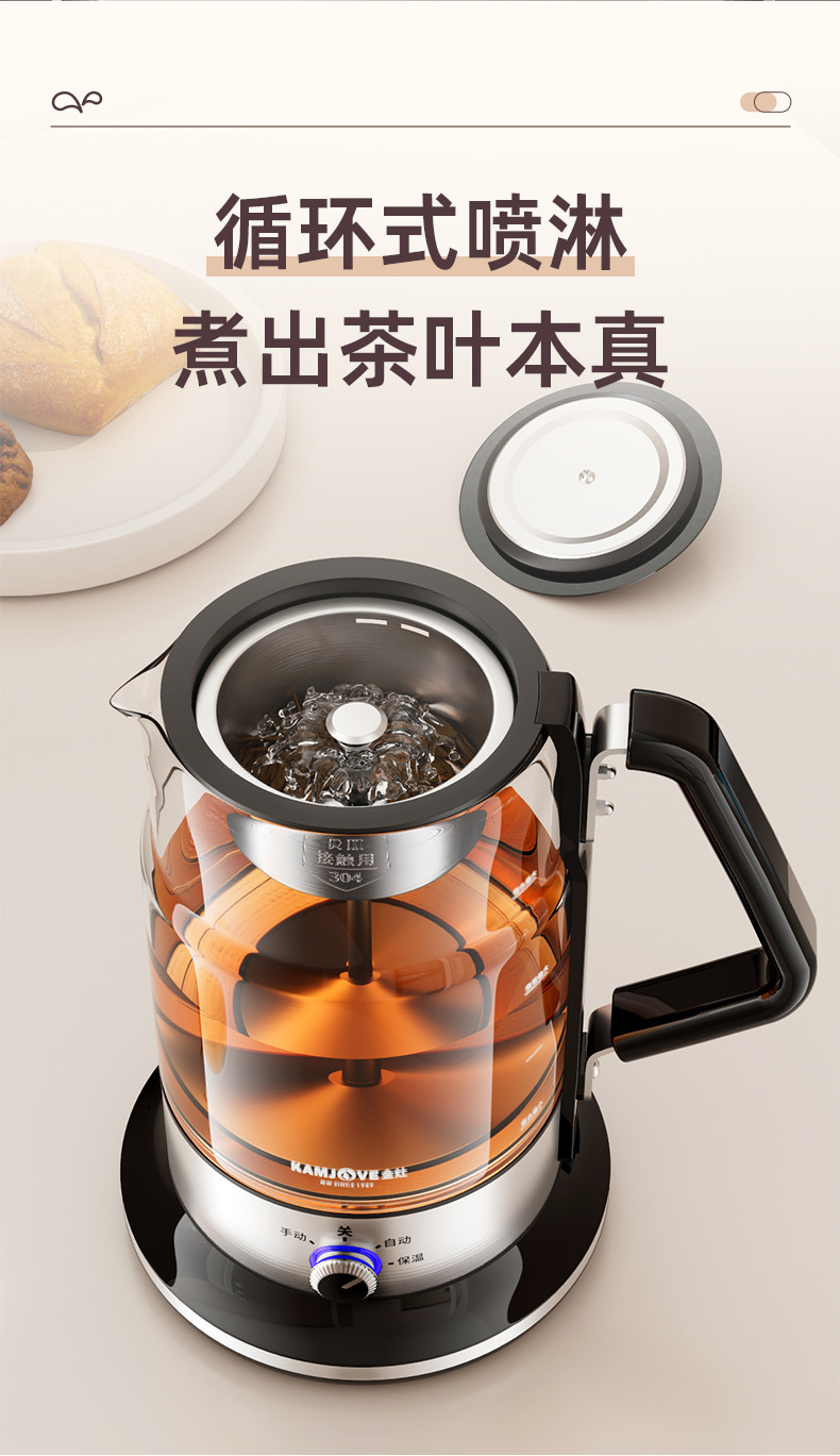 新款煮茶器煮茶炉喷淋式电茶炉玻璃小型黑茶煮茶壶蒸汽泡茶壶家用
