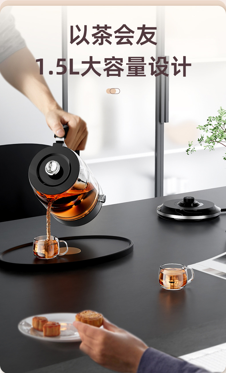 蒸汽煮茶器大容量1.5L家用全自动玻璃烧水黑茶壶喷淋式电煮泡茶壶