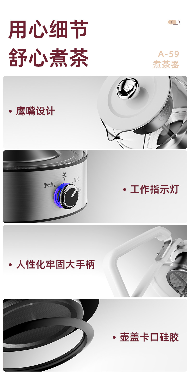 金かまどA-57蒸気シャワー式茶器電気茶器養生小茶器蒸しティーポット自動小型茶器