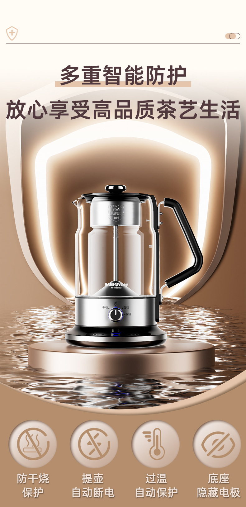 欧美特新升级S8智能全自动上水壶萃茶机泡茶器蒸汽喷淋恒温煮茶壶