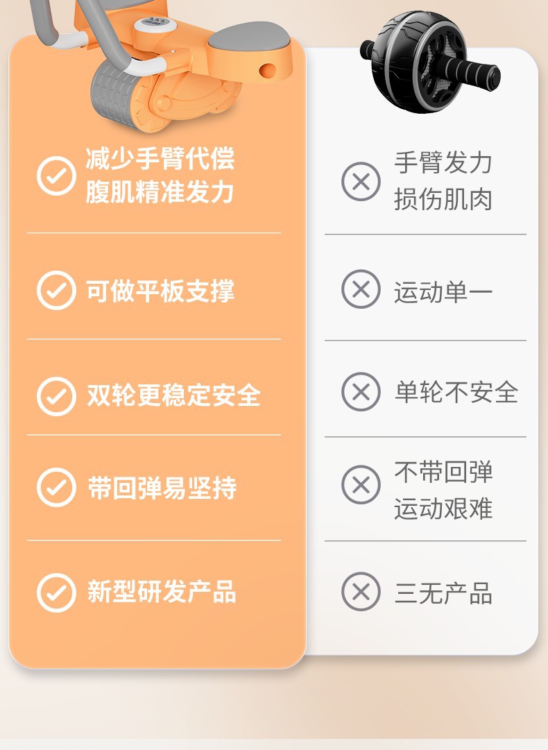 新型知能四輪健腹輪自動スプリングバック肘サポート式腹筋神器六肘サポート巻き腹輪運動