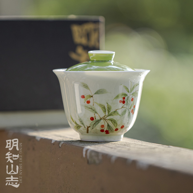 明知山志翠車センチ子華初蓋碗手描き家庭用陶磁器泡茶碗工夫茶器蓋碗