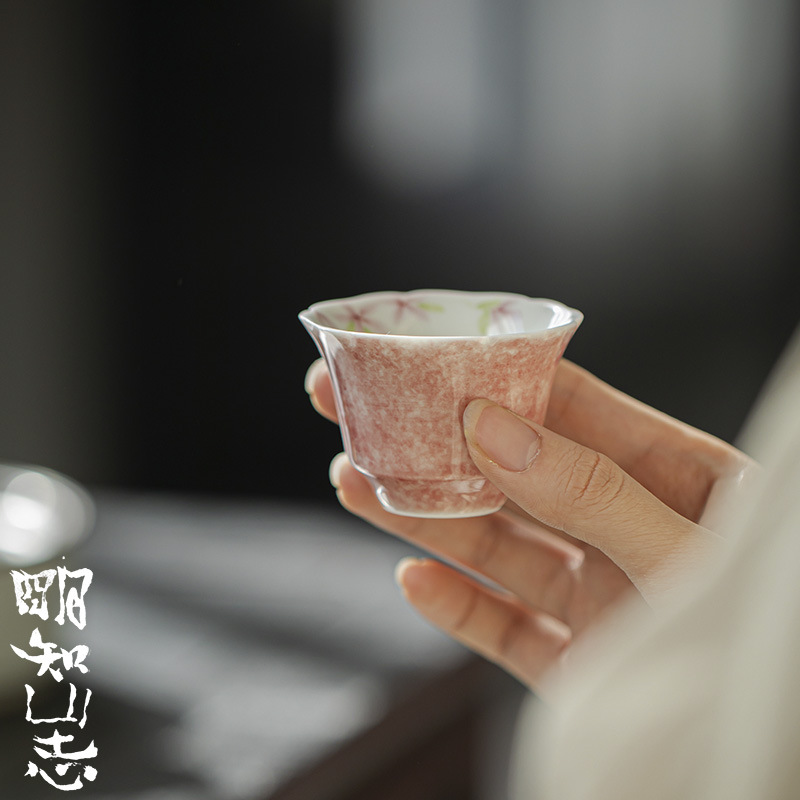 明知山志蒼煙紅高足手描き品茗杯家庭用陶磁器茶単杯茶室文人器杯
