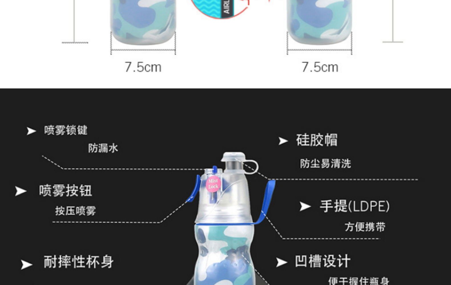 2024メーカー直供創意騎行保冷噴霧水筒屋外フィットネス噴霧カップ高級ビジネスプレゼント