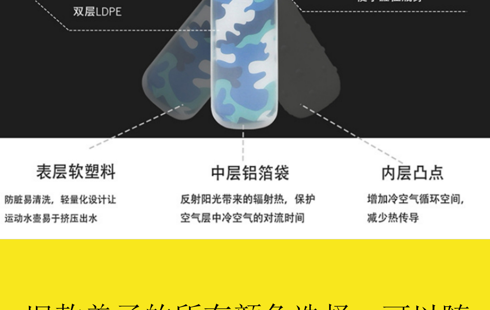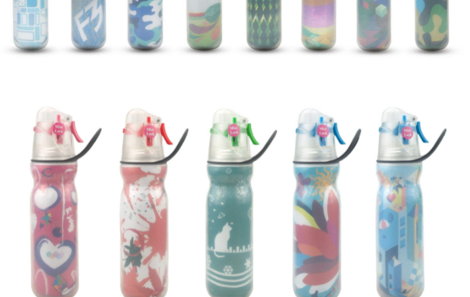 スプレーカップ源工場直売二重保冷屋外携帯運動補水防止スポーツカップ