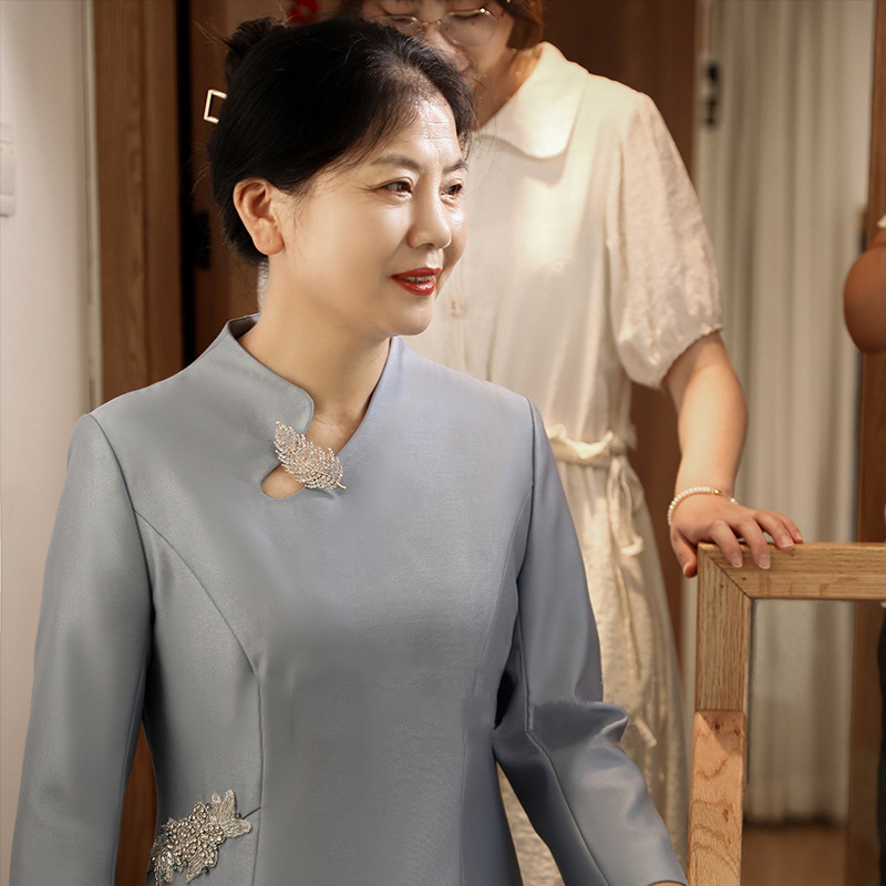 水色2026年新作お母様向けフォーマルドレス、結婚式披露宴用チャイナドレス、中年のお母様向けイブニングドレス