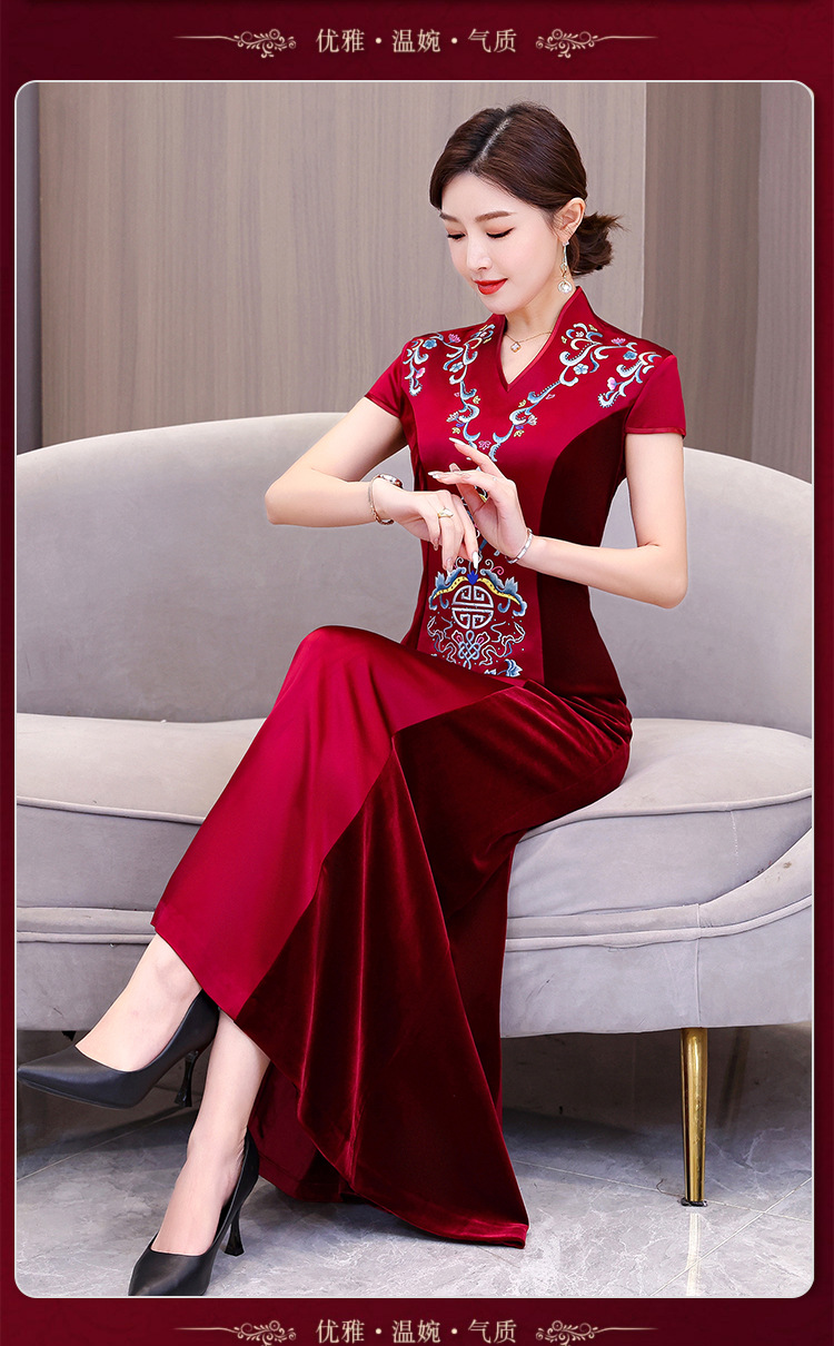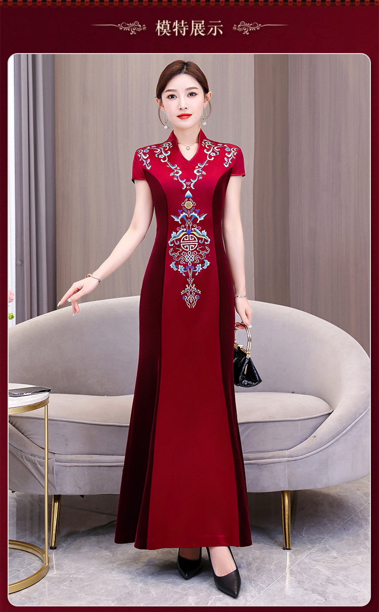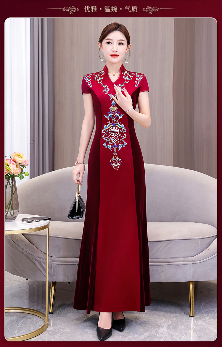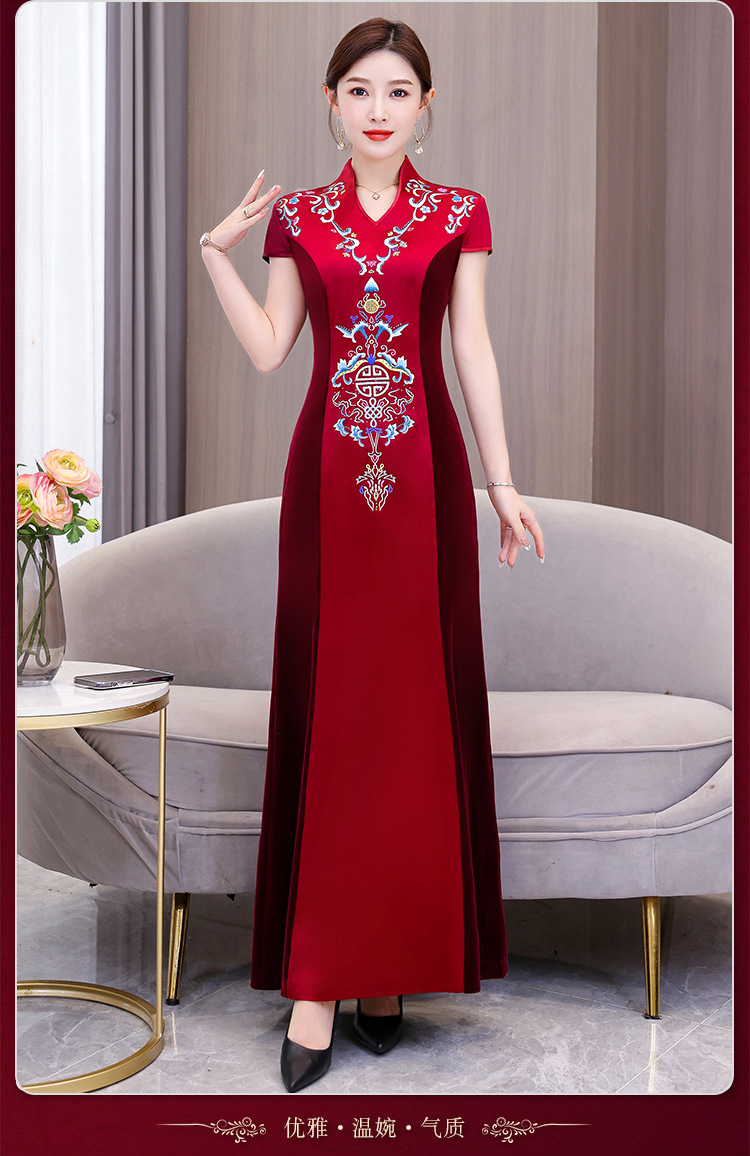 Xxnz6593新中国式優雅喜姑結婚披露宴装チャイナドレス2025新型気質母ワンピース