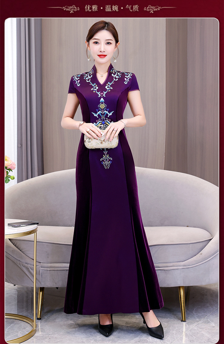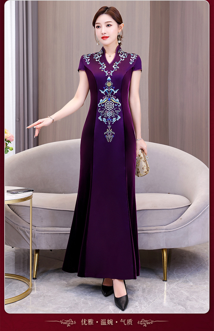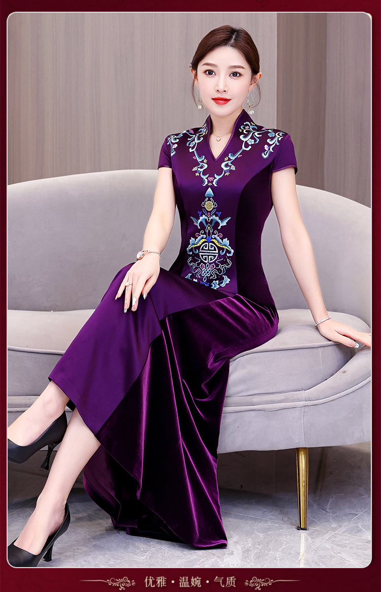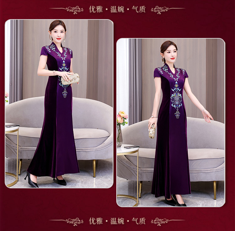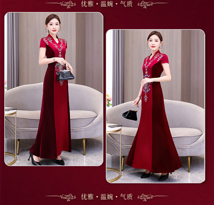 Xxnz6593新中国式優雅喜姑結婚披露宴装チャイナドレス2025新型気質母ワンピース