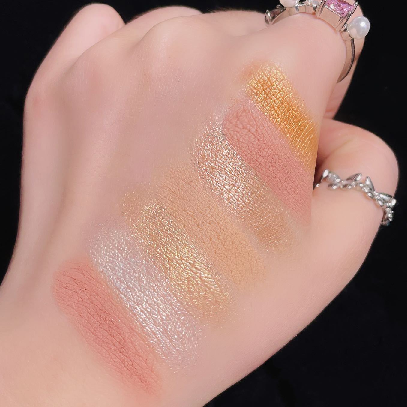 単色マットハイライトアイシャドウで涙溝、ほうれい線、顔の凹みを明るくし、立体感のあるスモーキーアイ、アイスキューブヌードメイクを彩ります