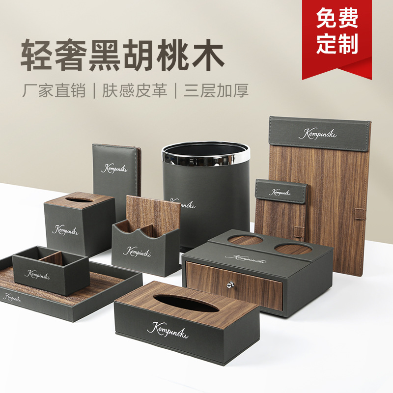 カスタマイズされたホテルのバスアメニティ収納ボックス使い捨て歯ブラシと歯ブラシボックスホテルの革製品ティッシュボックスリモコンボックス