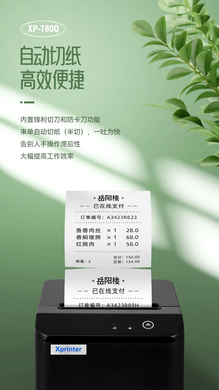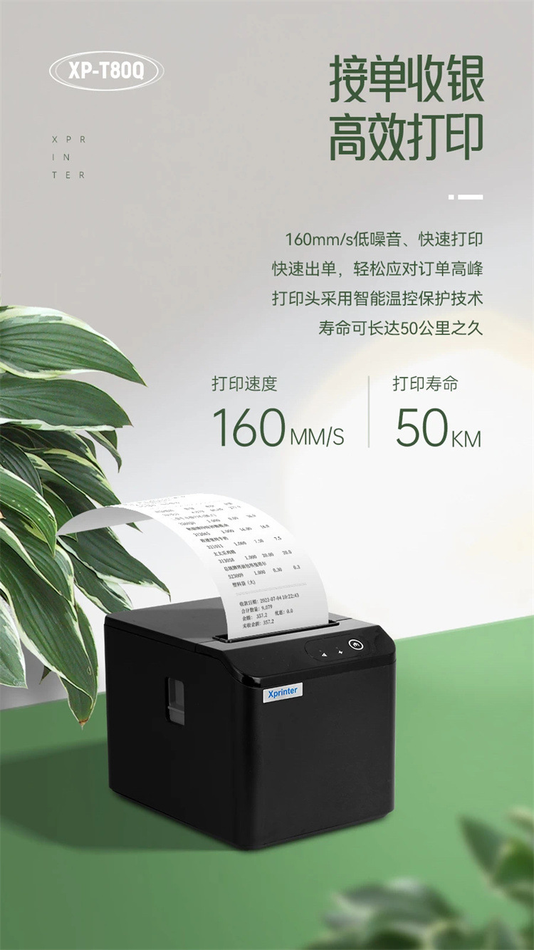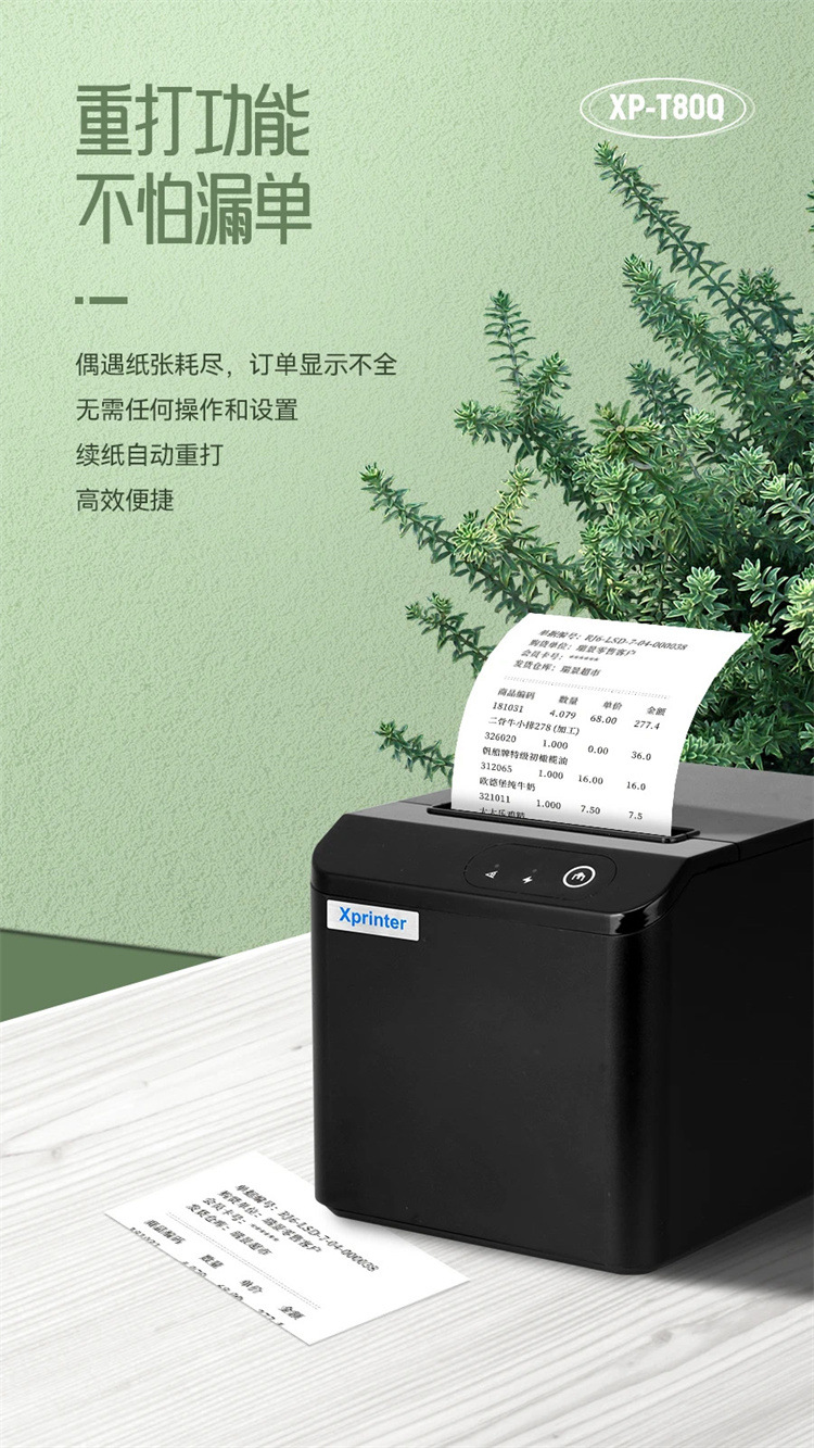 芯葉 XP-T80Q 感熱式レシートプリンター 飲食・医療向けPOSレジ 後方厨房用ネットワークポート搭載小型レシートプリンター XP-80T