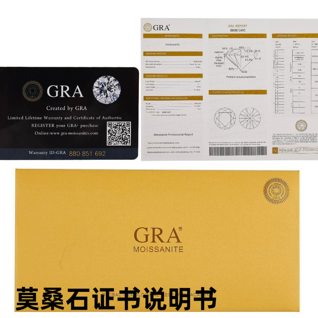 Gra莫桑石証明書莫桑石ジュエリーカラット指輪ペンダント証明書莫桑証明書代理発行