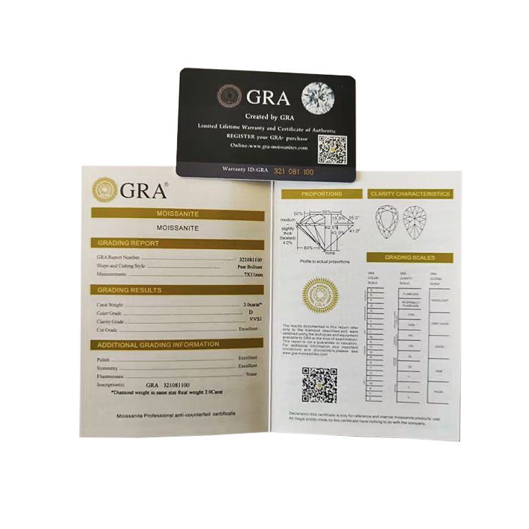 GRA莫桑石説明書証明書/封筒/カバー/箱入り現物卸売り