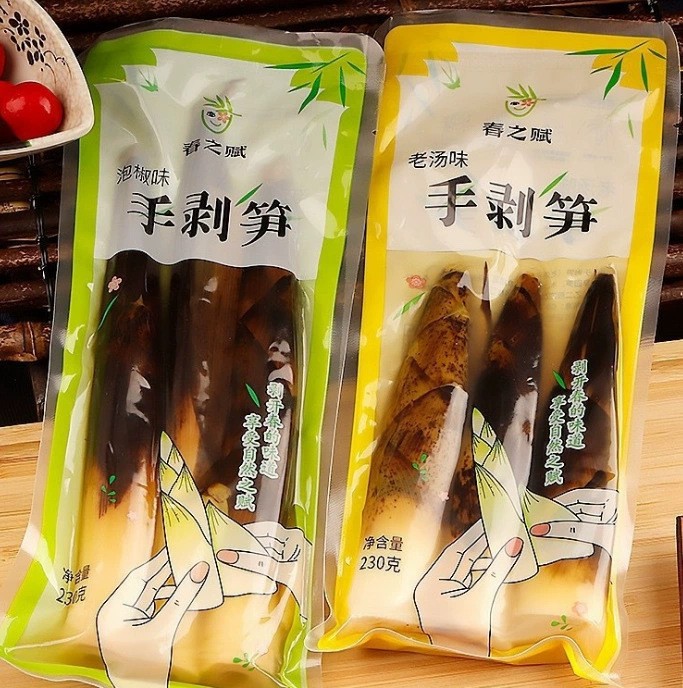 春の賦手は筍の辛味を剥ぎ取って、手は筍の唐辛子の味の古いスープの味を引き裂いて袋を開けてインスタント食品の酸っぱい間食の500gを食べます。
