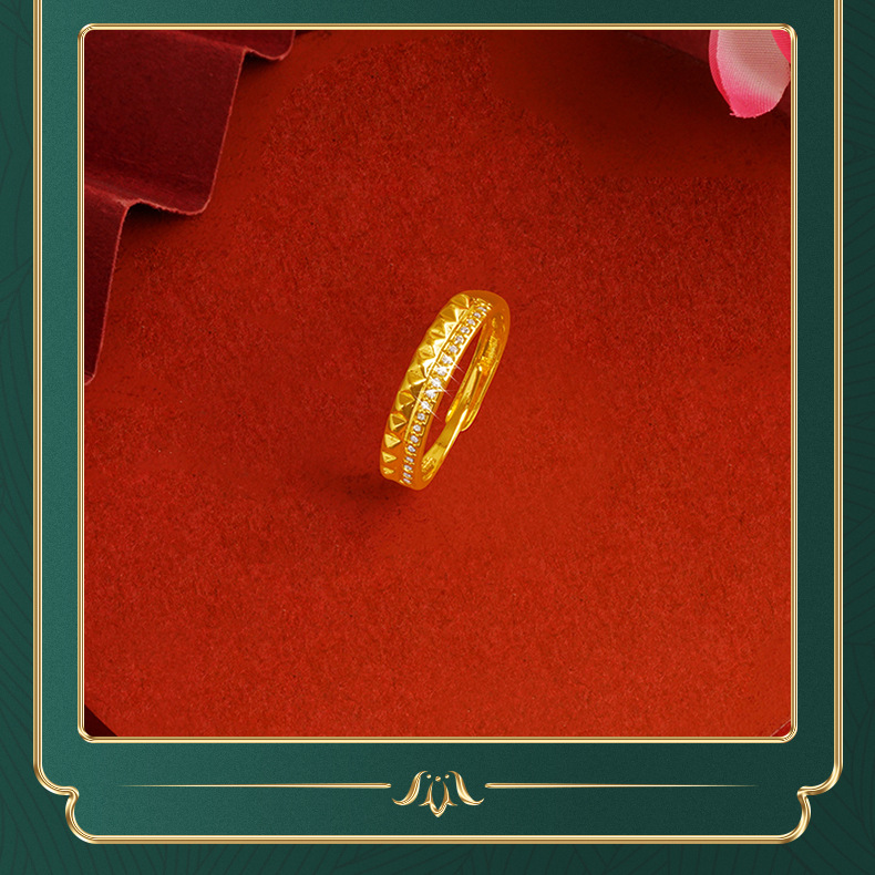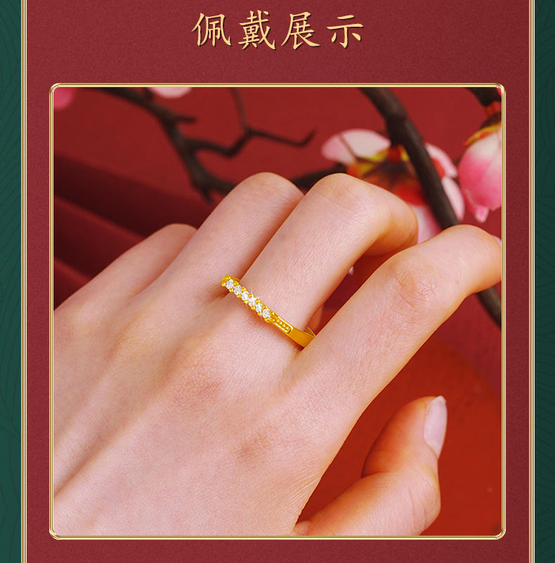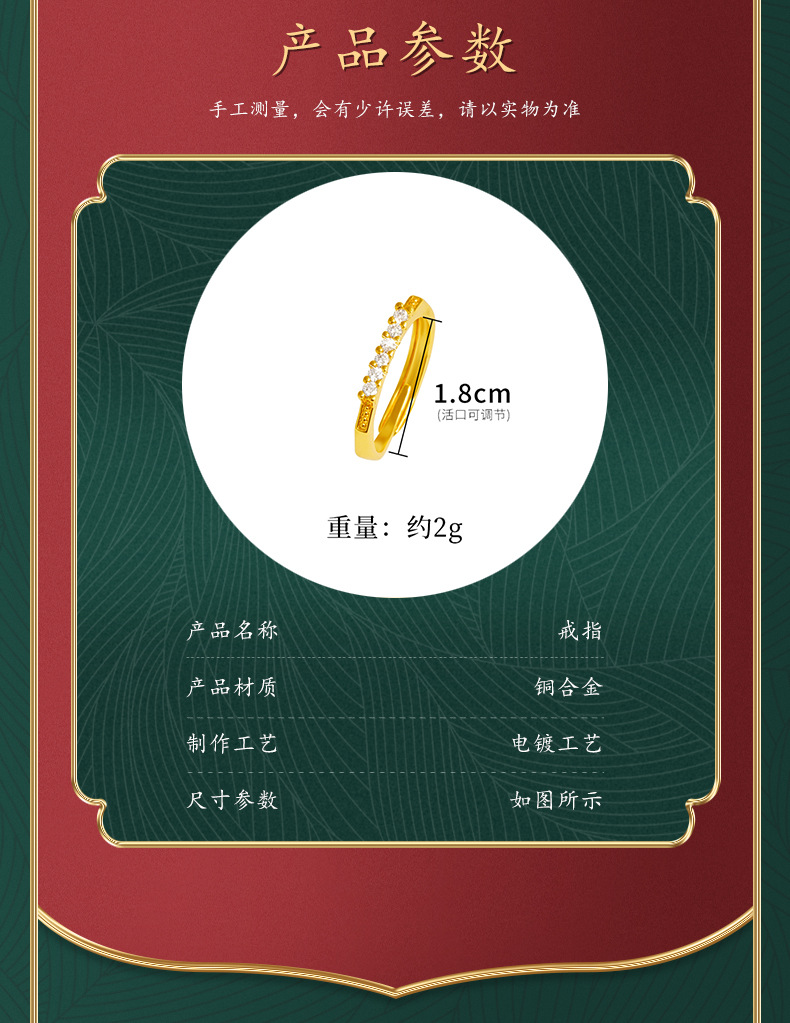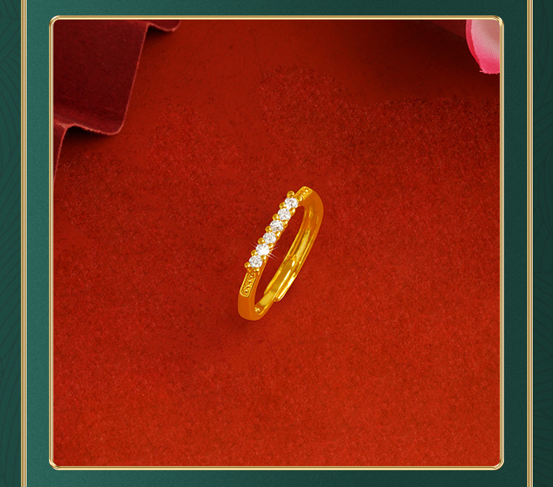 跨境设计感莫比乌斯戒指女越南沙金镶钻食指戒简约轻奢风仿金饰品