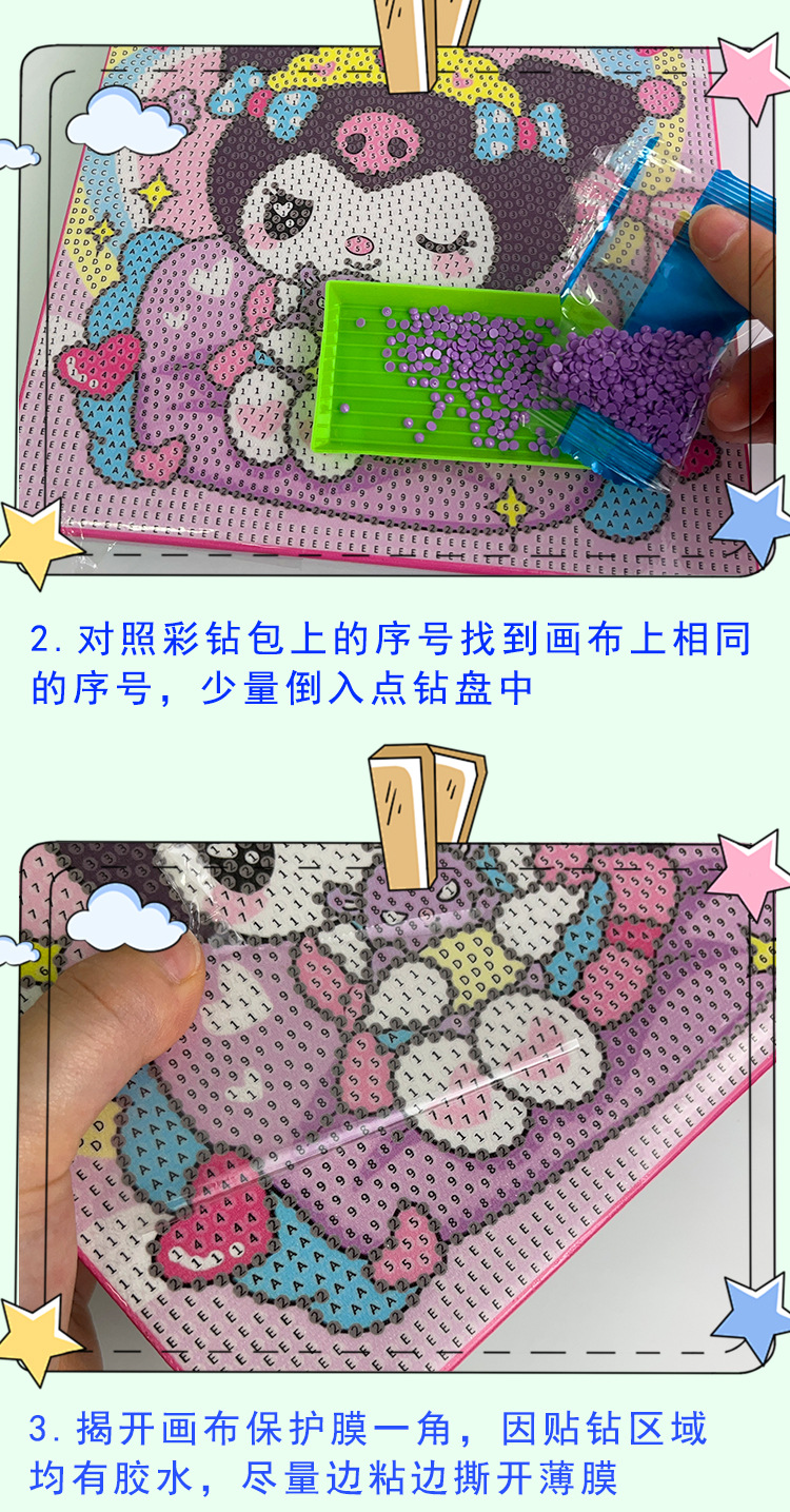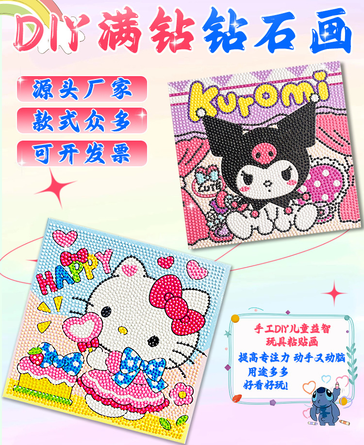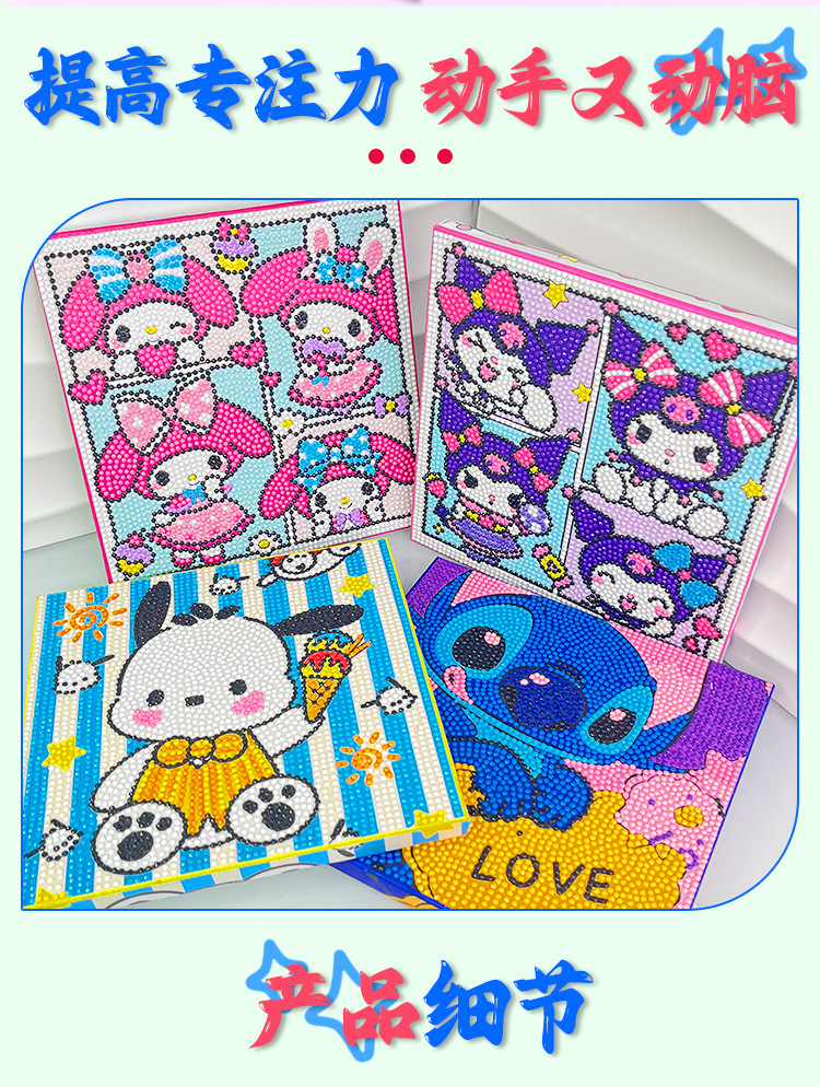 ダイヤモンドの絵の手作りのdiyは子供の材料を貼って漫画のサンリオを包みます。