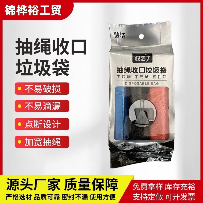 多くの厚いひものカラーゴミ袋を持って自動で口を閉じて使い捨ての台所ゴミ袋のビニール袋を手に入れる