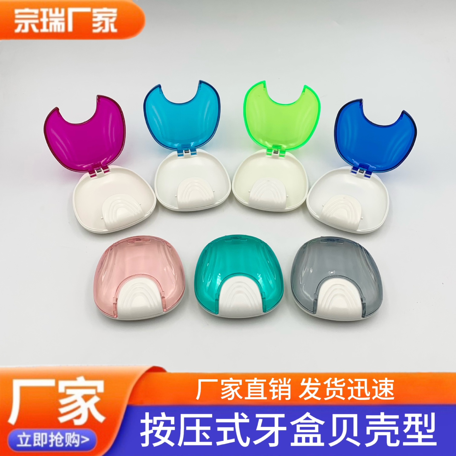 歯科矯正器具収納ボックス 貝殻型歯箱 義歯ケース プッシュ式透明矯正器具ケース 携帯用