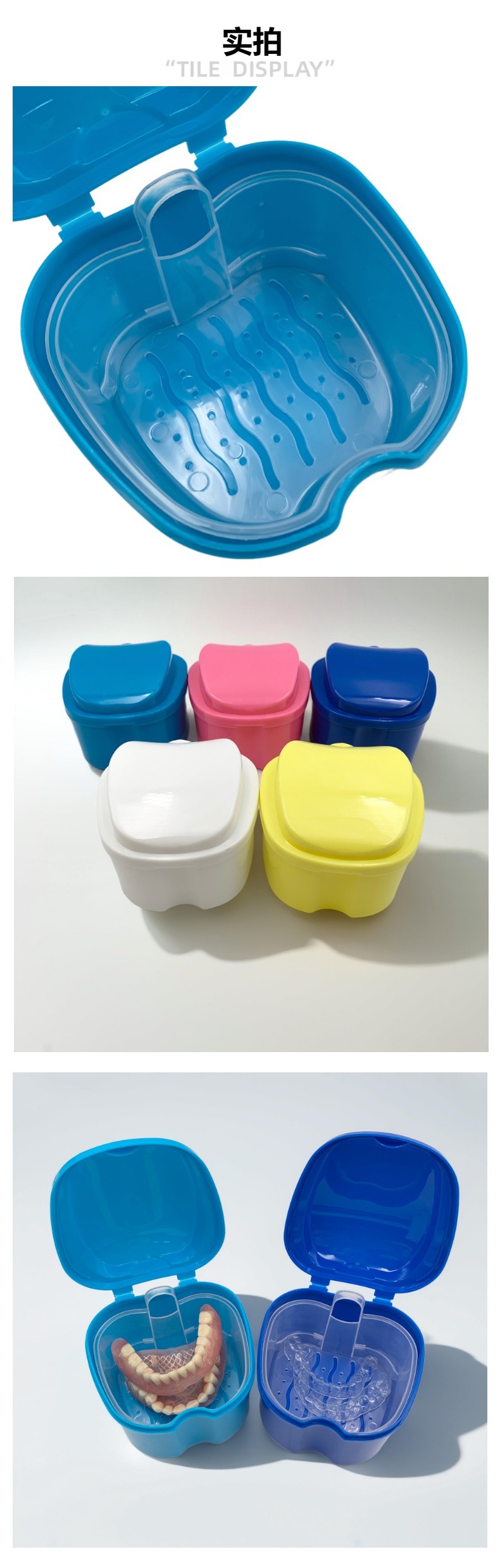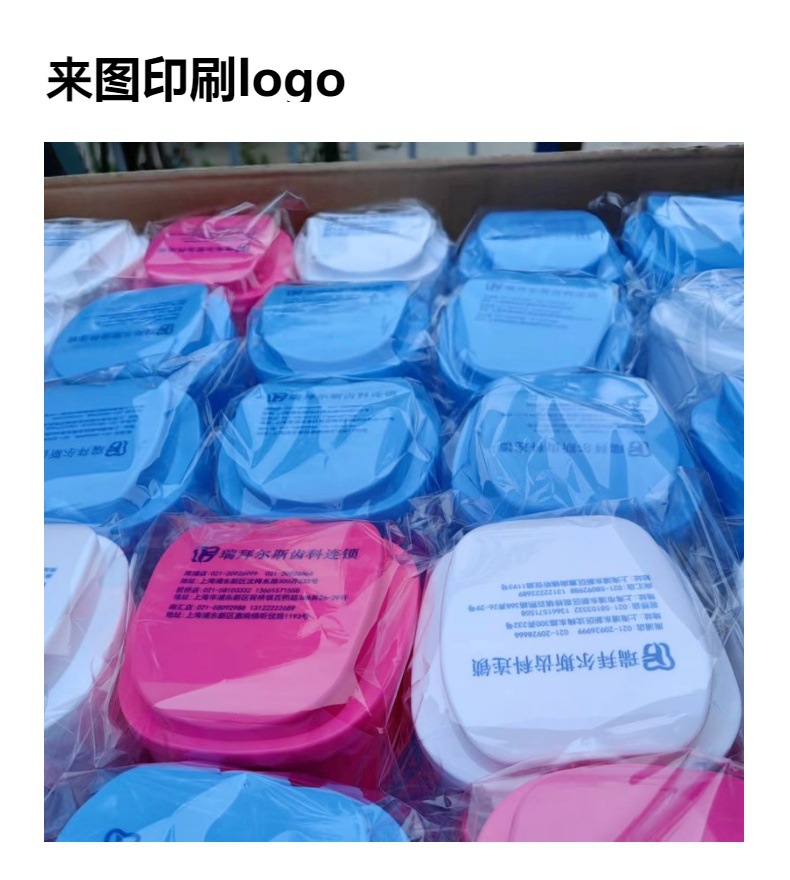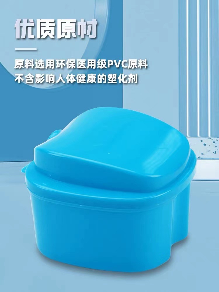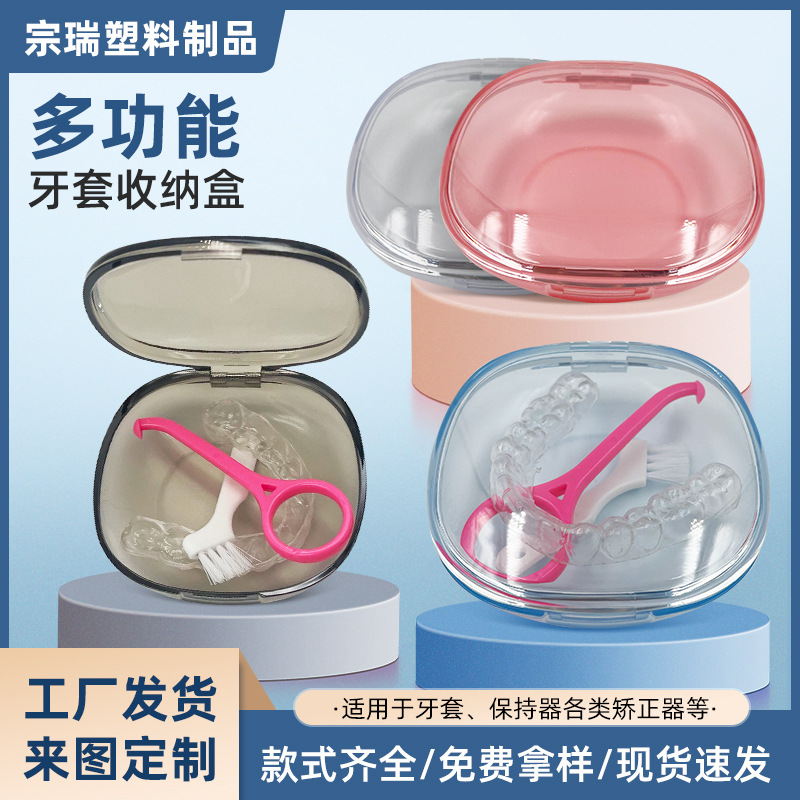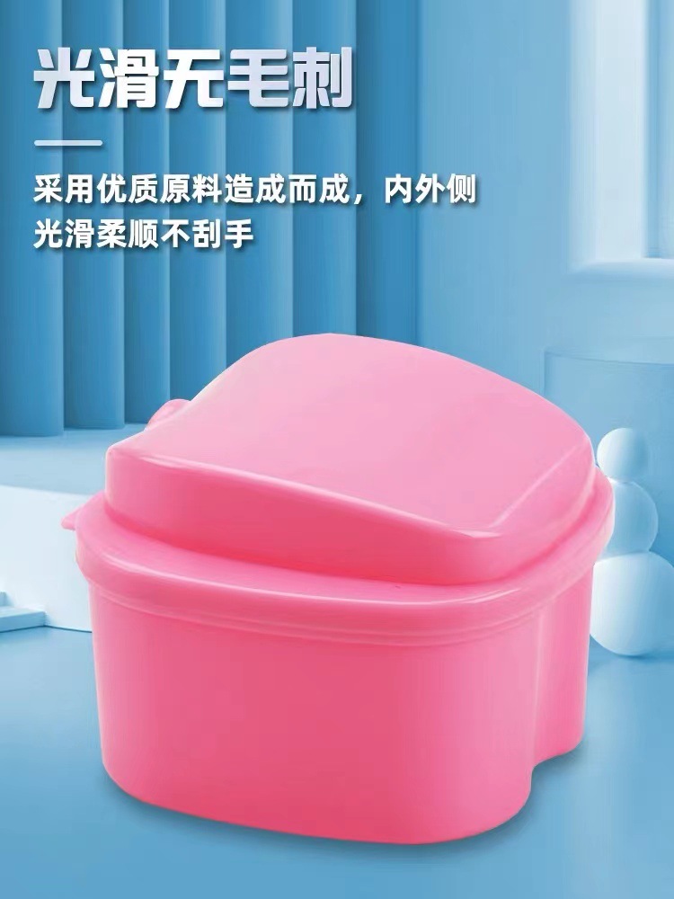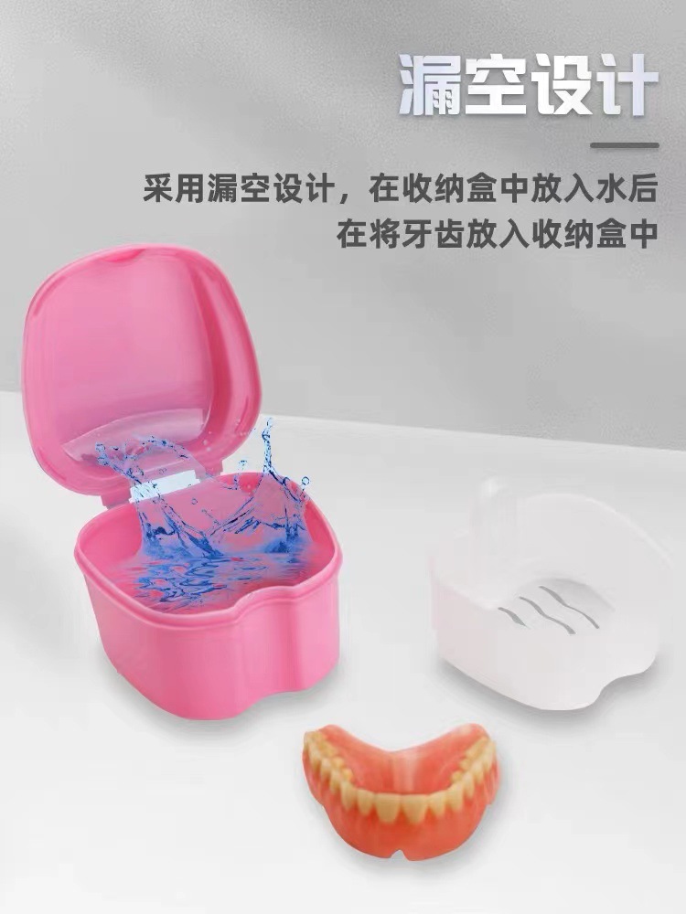 食品级材质假牙盒logo印刷苹果牙盒带清洗义齿假牙收纳沥水浸泡盒