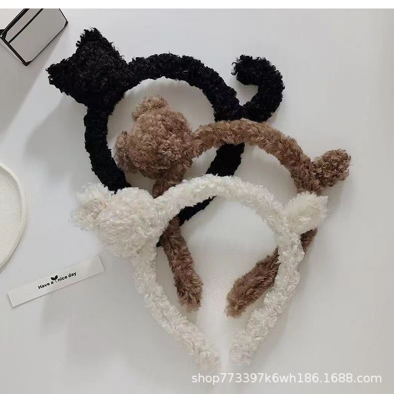 ぬいぐるみの猫の耳の鹿の角のボールのカチューシャの冬の金の韓国版のネットの赤いかわいいカチューシャのウサギの毛の漫画の顔を洗って髪飾りを持ちます。
