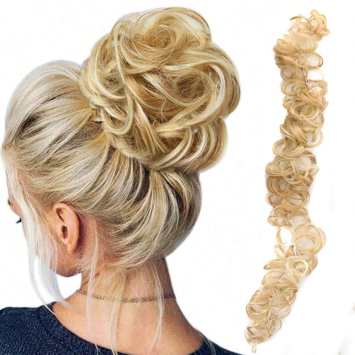 外国貿易の欧米の毛虫の髪の輪の団子の頭のかつらは自然でふわふわしています。