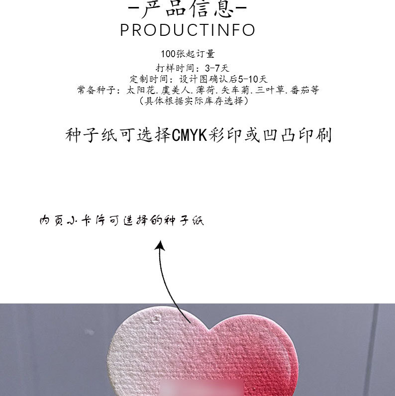 現物カスタム種子紙種子カードカスタム名刺グリーティングカード芸術紙発芽開花植物環境保護紙