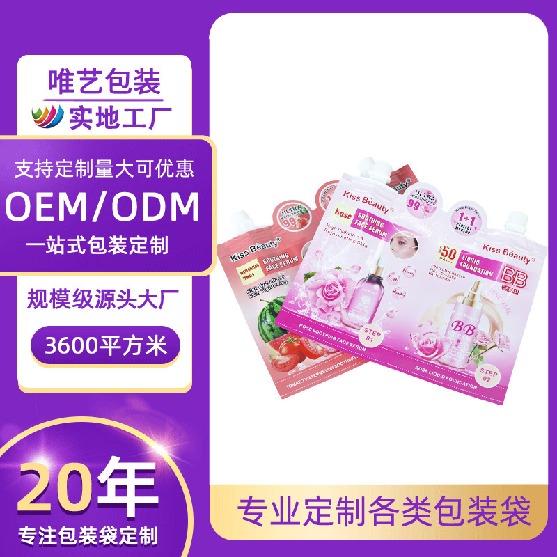 化粧品アルミホイルノズルバッグカスタム真空液体サンプル包装袋美容日用品ダブルコンパートメントトライアルバッグ