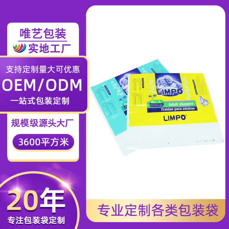 大人用おむつ包装袋、カスタム透明袋、衛生ケアパッド、おむつポータブル製品、トライアル複合袋