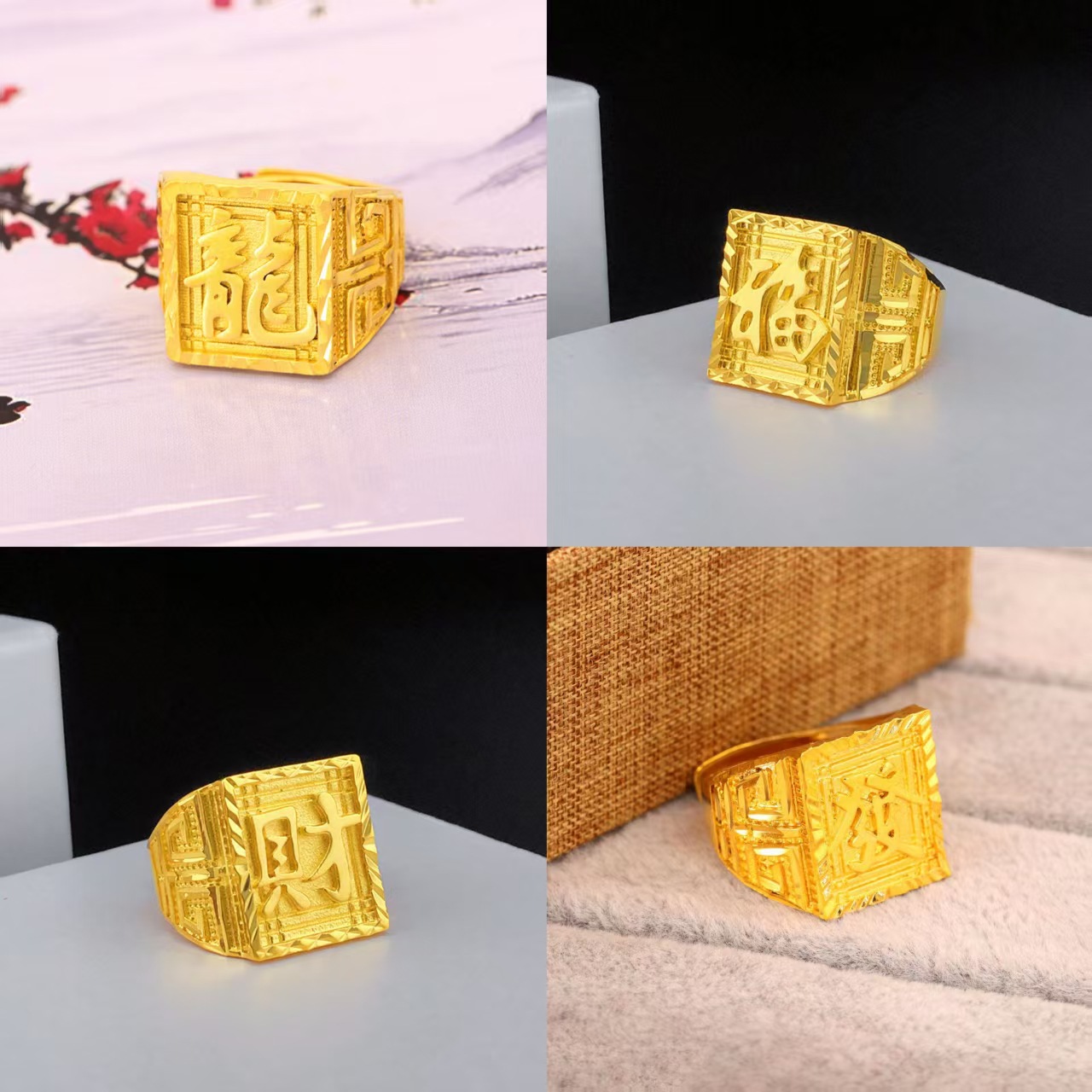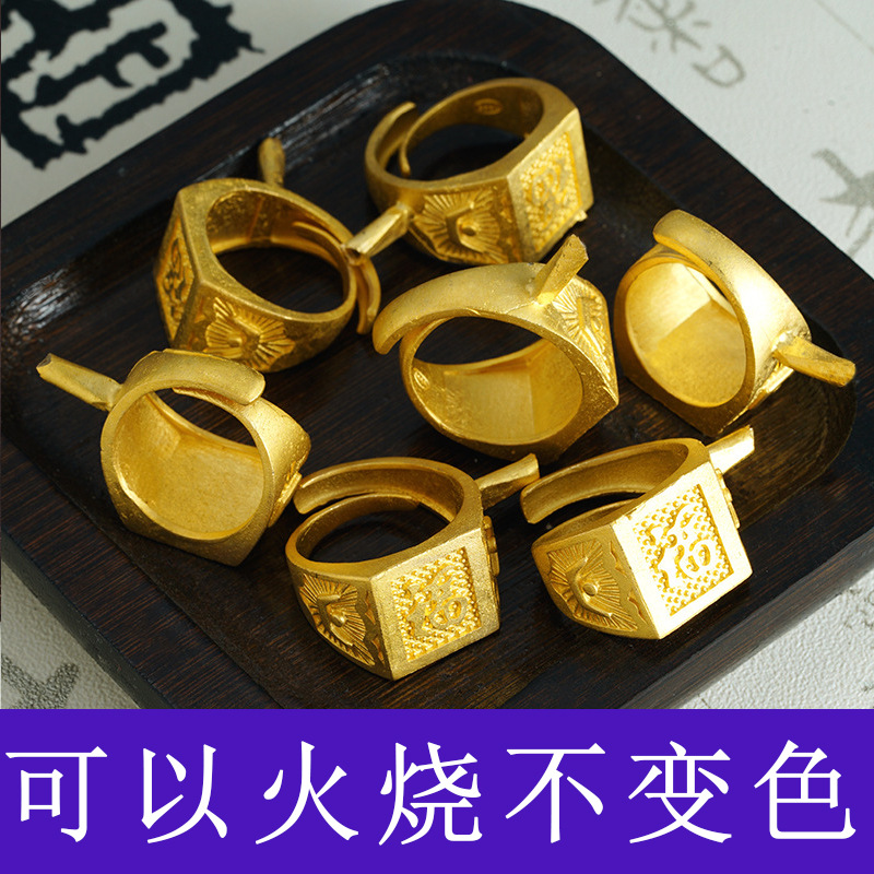 トレンドベトナム沙金指輪復古福字活口覇気男戒火焼金宝飾品半製品展示原料