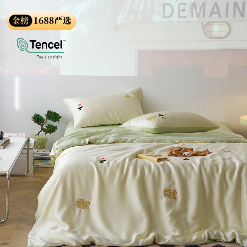 公式正規品! LF グレード 100 カウント レンチング テンセル 4 点セット リヨセル 漫画刺繍 クール シルキー シーツ