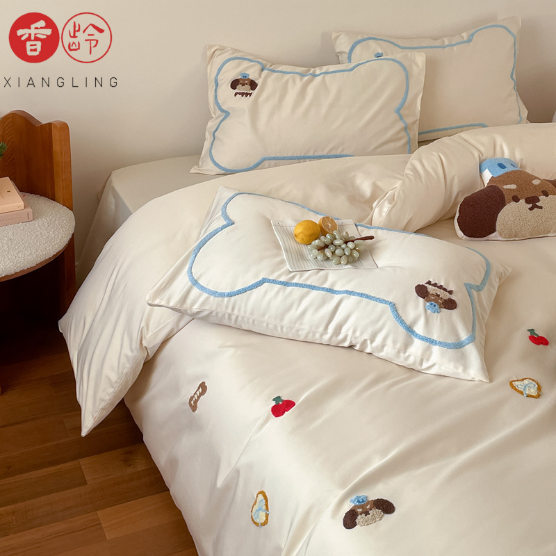 100番手サテン綿長繊維綿4点セットかわいい漫画純綿3点セットキルトカバーシーツ寝具