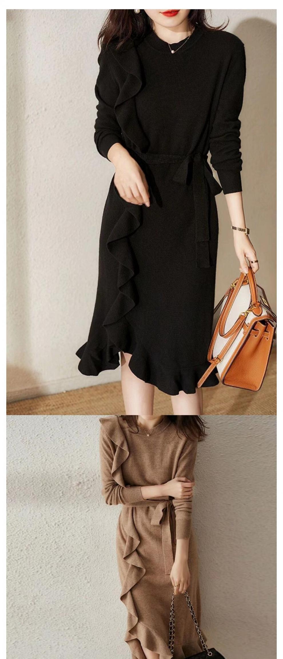秋冬女装2022年新作フレンチトレンチコートの中に長いスカートのセーターを着ています。