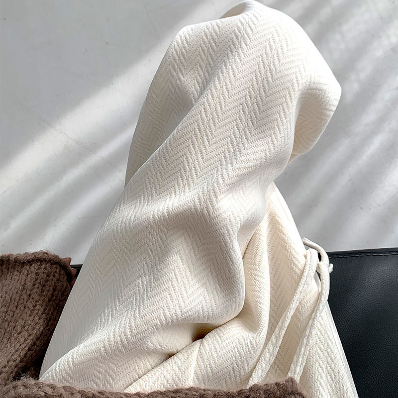 白色阔腿裤裤女春秋冬新款韩系慵懒灯芯绒人字纹阔腿休闲长裤子