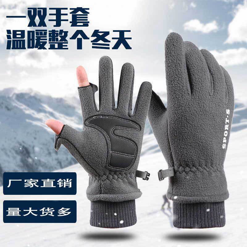 カバーリング手袋露出二本指革手袋冬のテイクアウト防水防寒アウトドア自転車運転釣り保温手袋