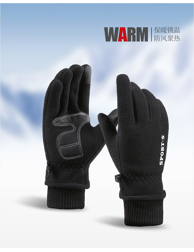 フリース手袋男性秋冬ベルベット保温屋外サイクリング運動車タッチパネル防寒手袋
