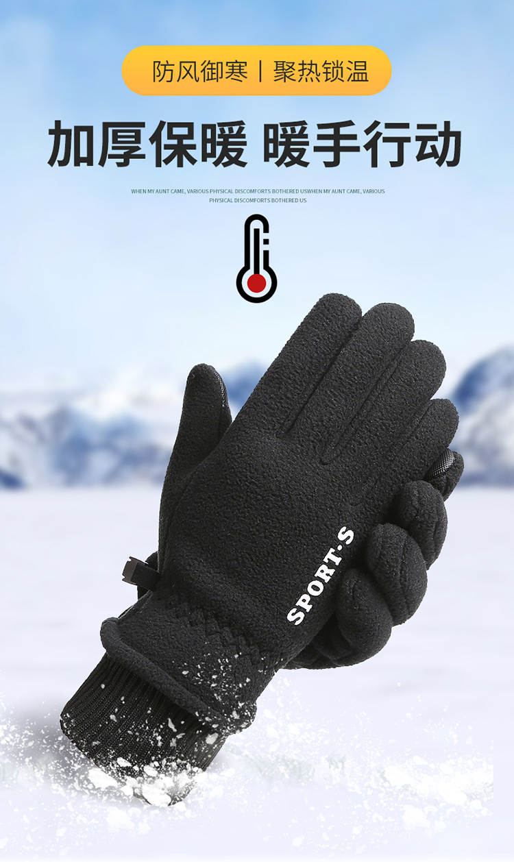 フリース保温手袋男性冬にベルベットを厚くして防風女性の屋外で運動するタッチパネルのカバー手袋