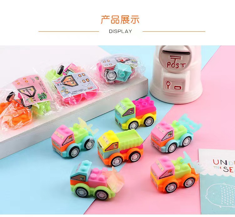 子供の益智は工事車の創意的な積み木を組み立てておもちゃの車の幼稚園の賞品のプレゼントを詰めて国境を越えて卸売りします。