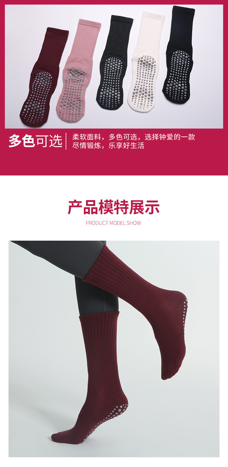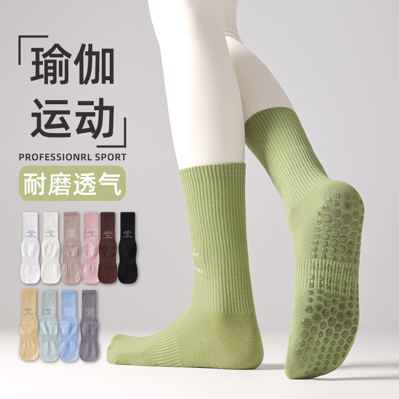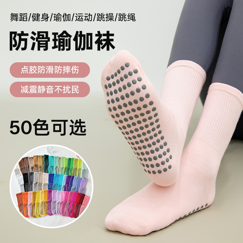 瑜伽袜子女春秋款中筒点胶防滑女士室内跳绳普拉提运动地板袜诸暨
