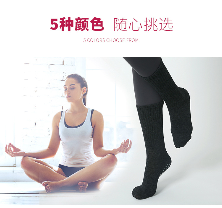 秋と冬の初心者向け滑り止め女性用プロヨガソックス、5本指ソックス、ダンスソックス、シリコンコットンピラティスソックス