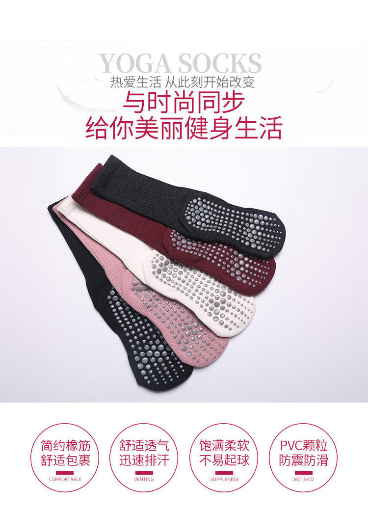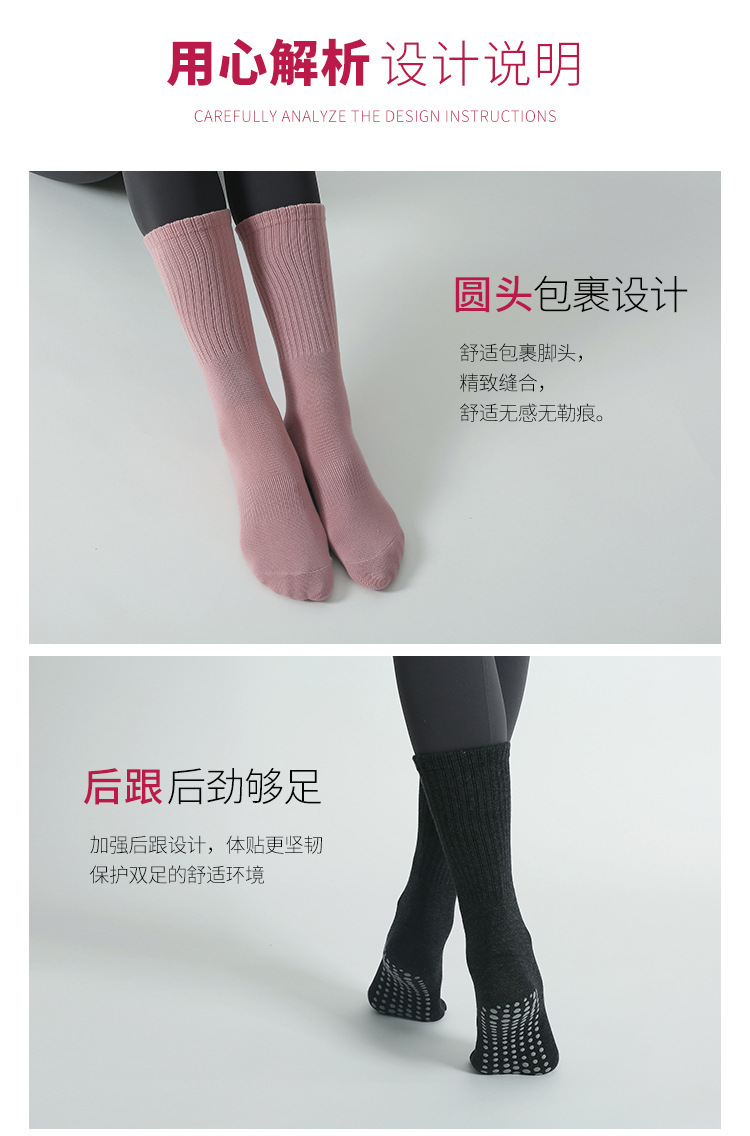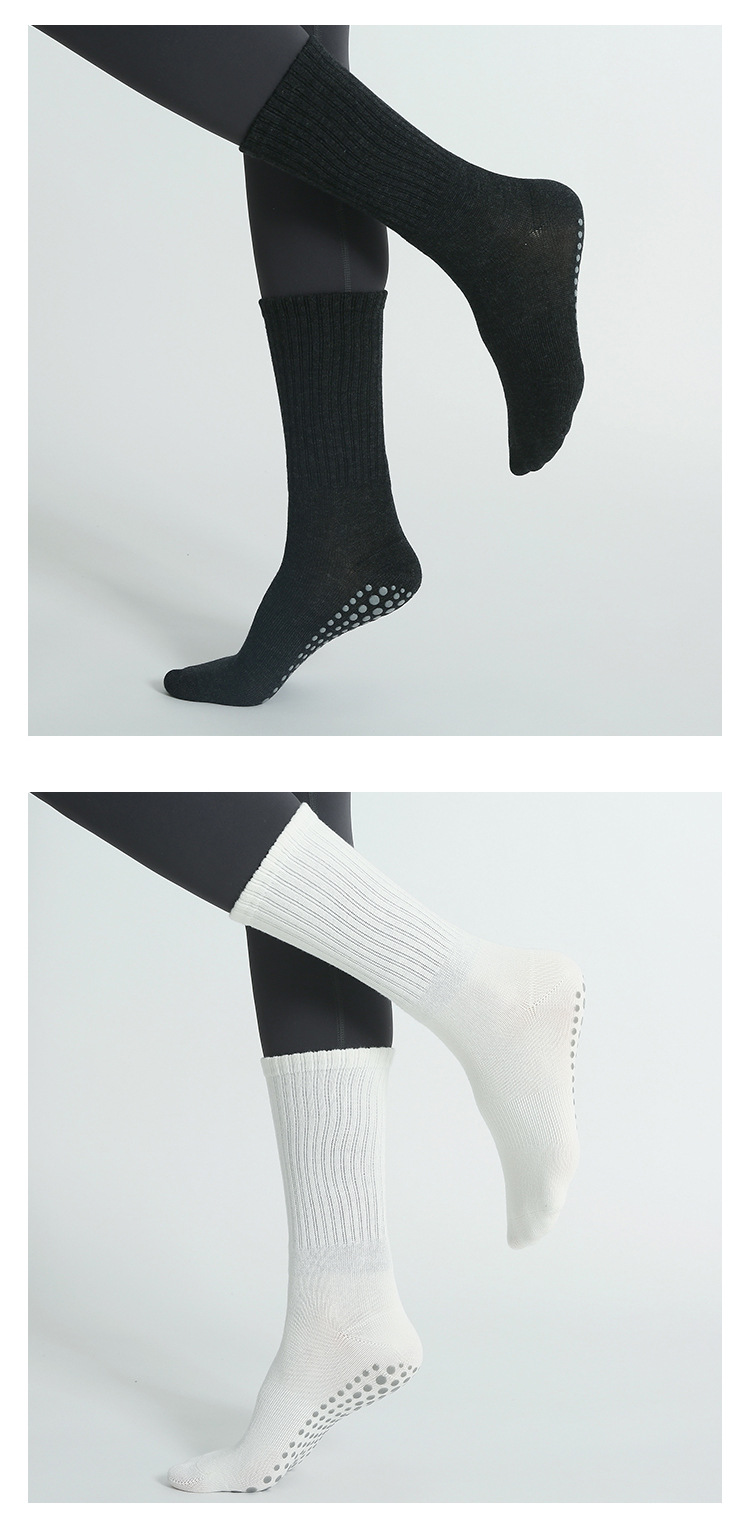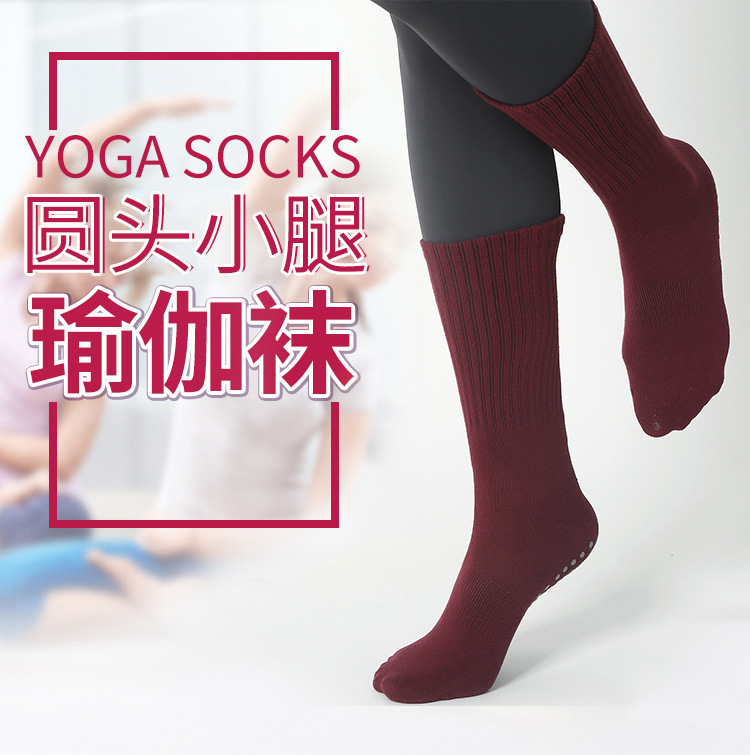 ヨガソックス滑り止めプロレディースラウンドヘッドフィットネスソックス秋冬中筒室内スポーツ専用プラティ滑り止めソックス