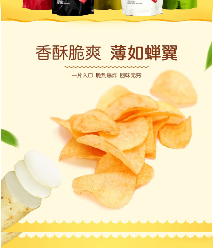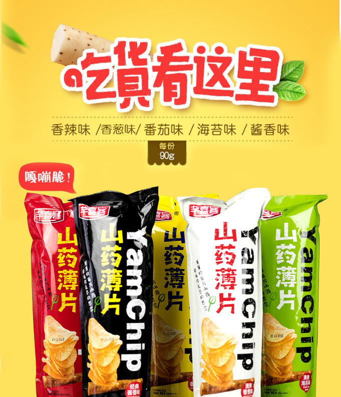 一箱の山薬の薄切りの山薬の煎り片90g30gネットの赤い間食の超大型の箱のポテトチップスの学生の間食のアマゾン