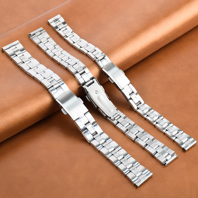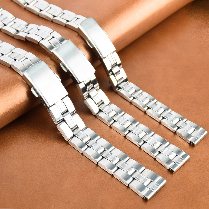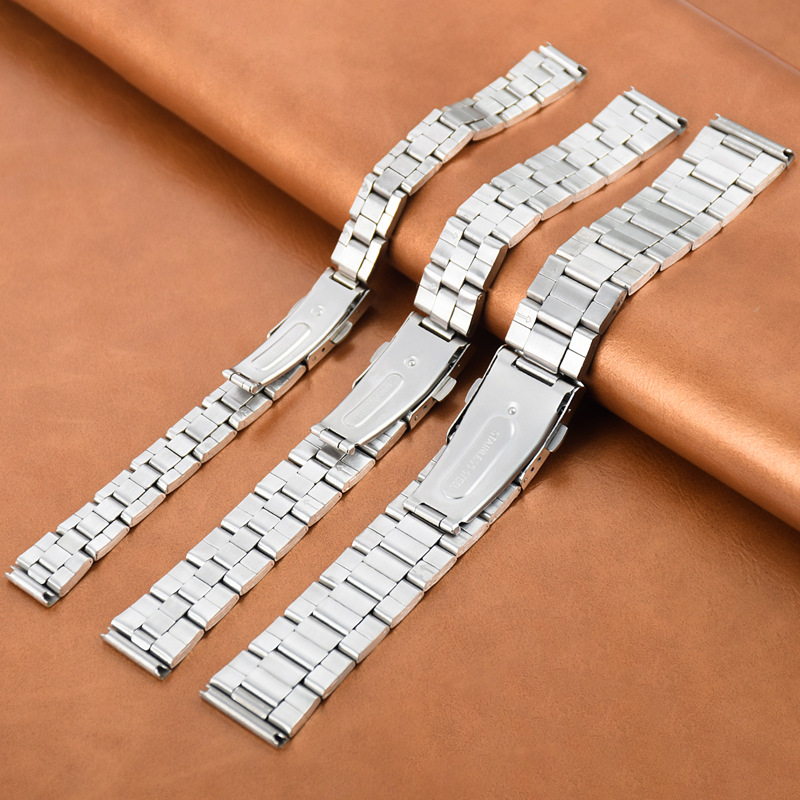ステンレス時計バンド五珠中実精鋼帯蝶双ボタン腕時計バンド腕時計部品12-22mm